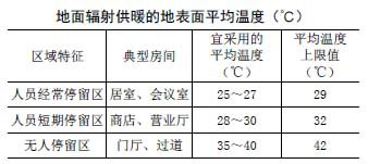 (1)供水溫度過高,在供暖初期地表面溫度過高,不滿足規范要求、且室內燥熱。輻射供暖的地表面平均溫度宜符合下表的規定: