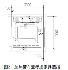在設計階段,布置加熱管時,應考慮家具的遮擋,并將溫度較高的進水管段優先布置在熱損失較大的外墻及外窗部位,且外墻及外窗附近的加熱管的間距,可適當減小。如圖2所示: