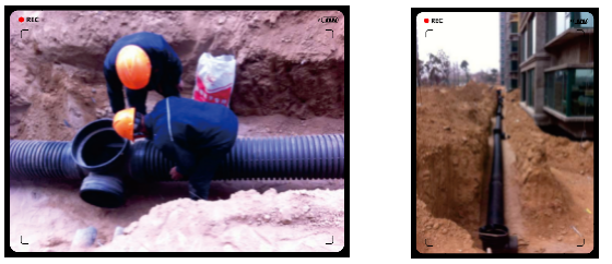 高密度聚乙烯是高分子聚合物,其雙壁波紋管剛?cè)峒鎮(zhèn)洌哂休^高的環(huán)剛度和良好的柔韌性,故在應(yīng)用中,無(wú)需混凝土管基、溝槽驗(yàn)收合格后即可直接覆管,實(shí)現(xiàn)邊開挖、邊下管、邊回填,簡(jiǎn)化了施工程序,極大地縮短了工期。其良好的環(huán)剛度可保證管道敷設(shè)路面的重載通行安全,可使管道克服地震、地面不均勻沉降造成的破壞應(yīng)力,提高了公用設(shè)施的抗震能力和長(zhǎng)期運(yùn)行可靠性。