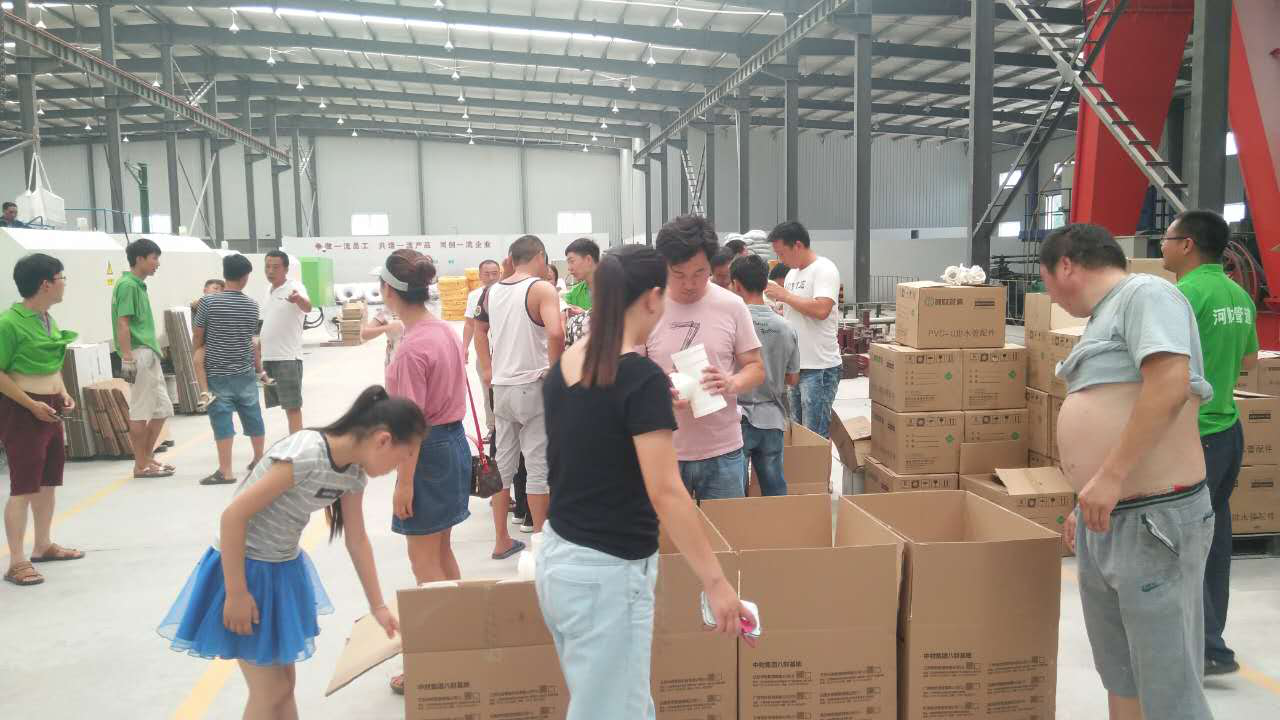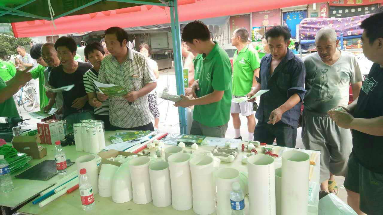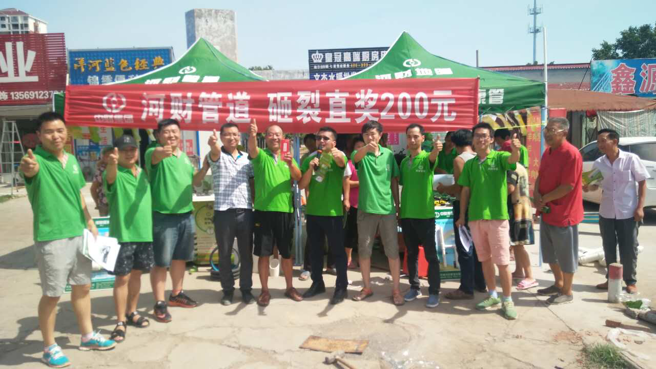 隨后的7月8日-10日三天時間拉練隊伍成員不懼40℃的炎熱酷暑,在溫縣鄉(xiāng)鎮(zhèn)組織了7場產(chǎn)品宣傳的砸管件活動。每一場活動在當(dāng)?shù)囟家鹁薮蠓错懀⒌玫疆?dāng)?shù)匕傩盏姆Q贊好評,河財管道的知名度得到了迅速提升。