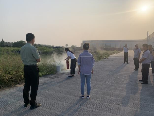 在廠區模擬火災現場,由安全員王志勇進行滅火演練注意事項宣貫及步驟講解,副總經理張總下達演習指令。通過現場演練,消防警官指導大家如何正確使用滅火器,參加演練的各部門人員輪流實踐操作滅火器使用方法。