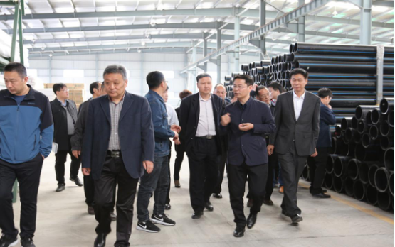 傅局長等一行先后參觀了公司生產車間、管材倉庫、原料倉庫、產品展廳等,過程中對公司生產原料、設備、產品標識等情況進行檢查交流,對河財管道發展規模、質量管理等各方面工作給予了高度評價。